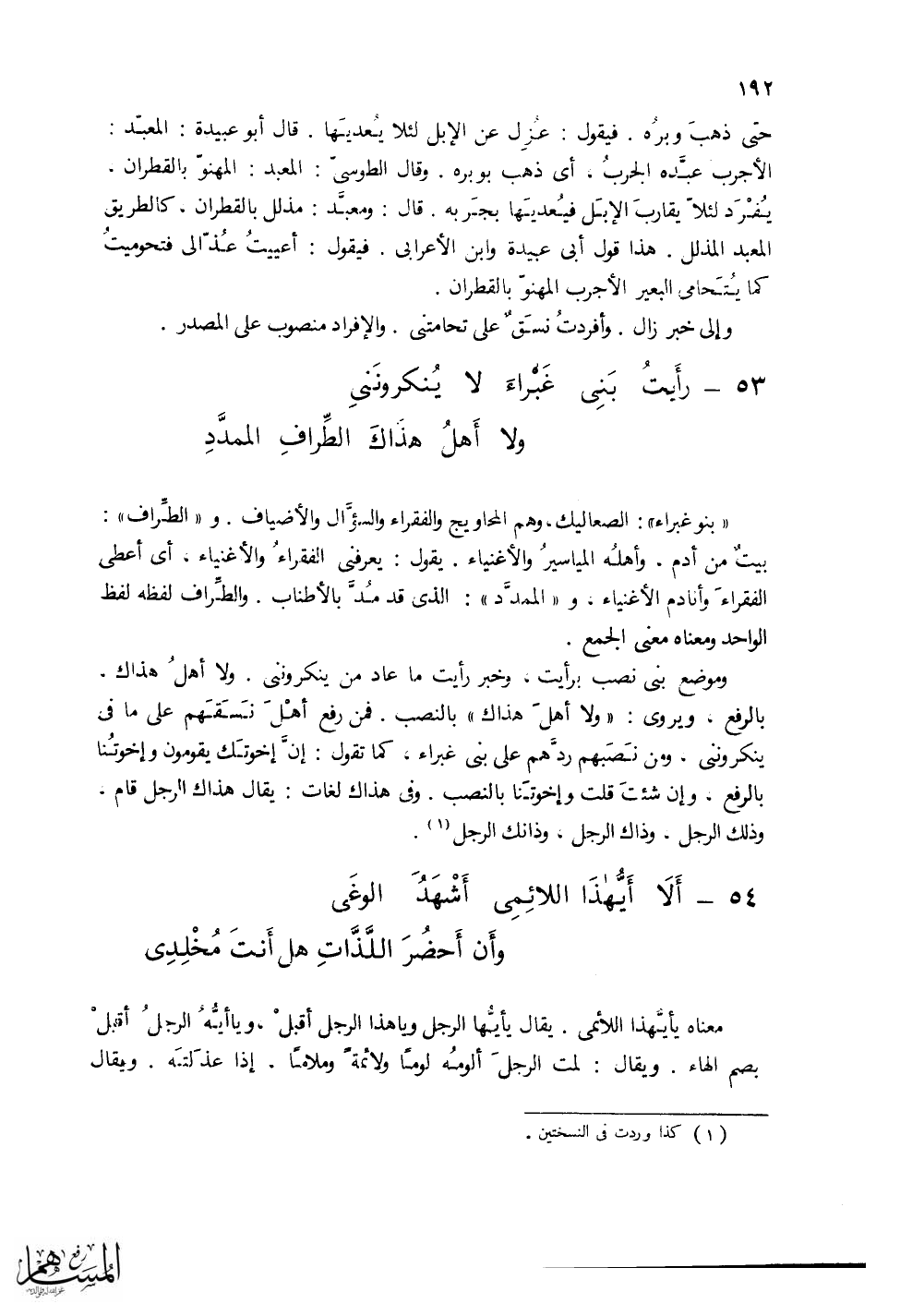 (رأَيتُ بَنى غَبْراءَ لا يُنْكِرونني ... ولا أَهلُ هذاكَ الطِّرافِ الممدَّدِ)