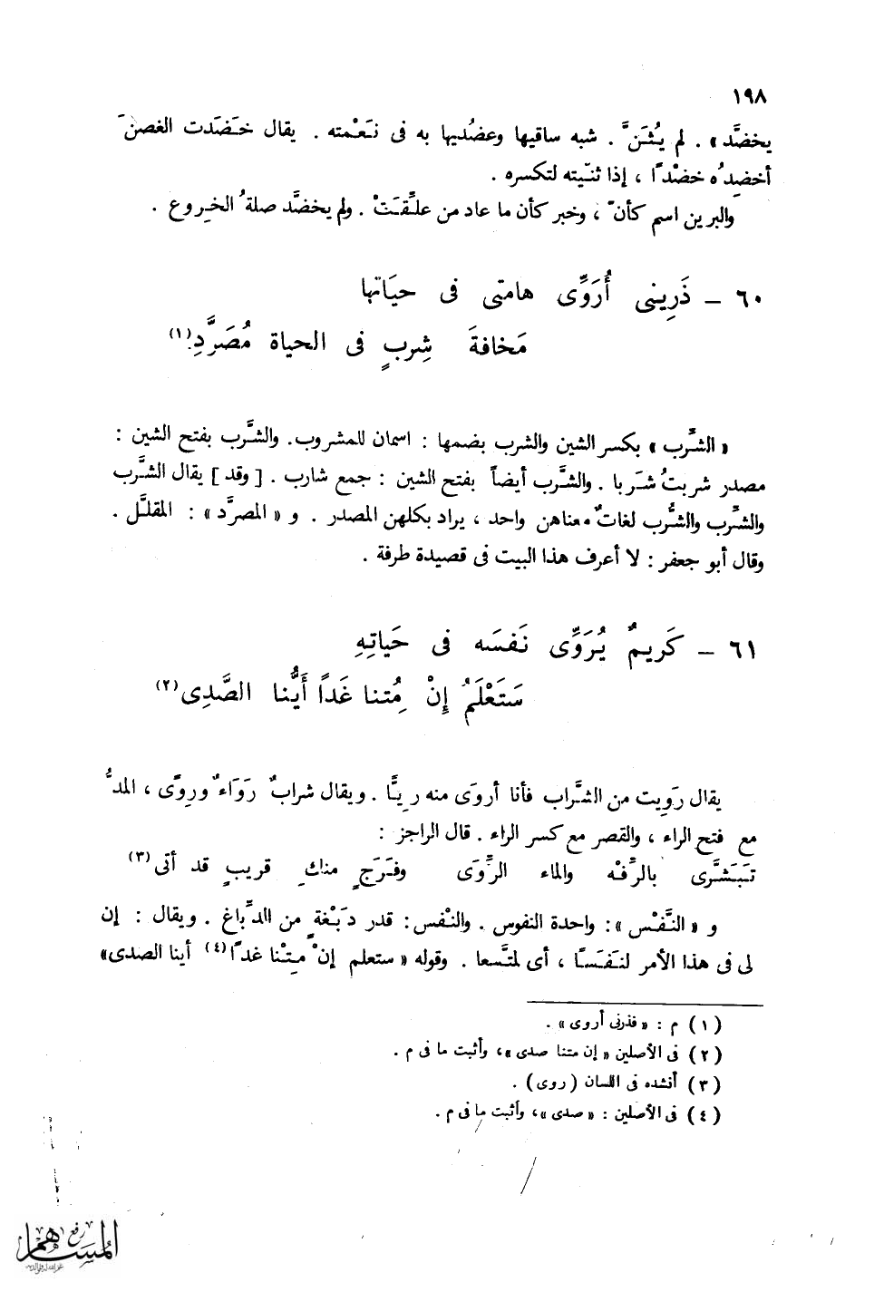 (ذَريني أُرَوِّي هامتي في حيَاتها ... مَخافة شِربٍ في الحياة مُصرَّدِ)