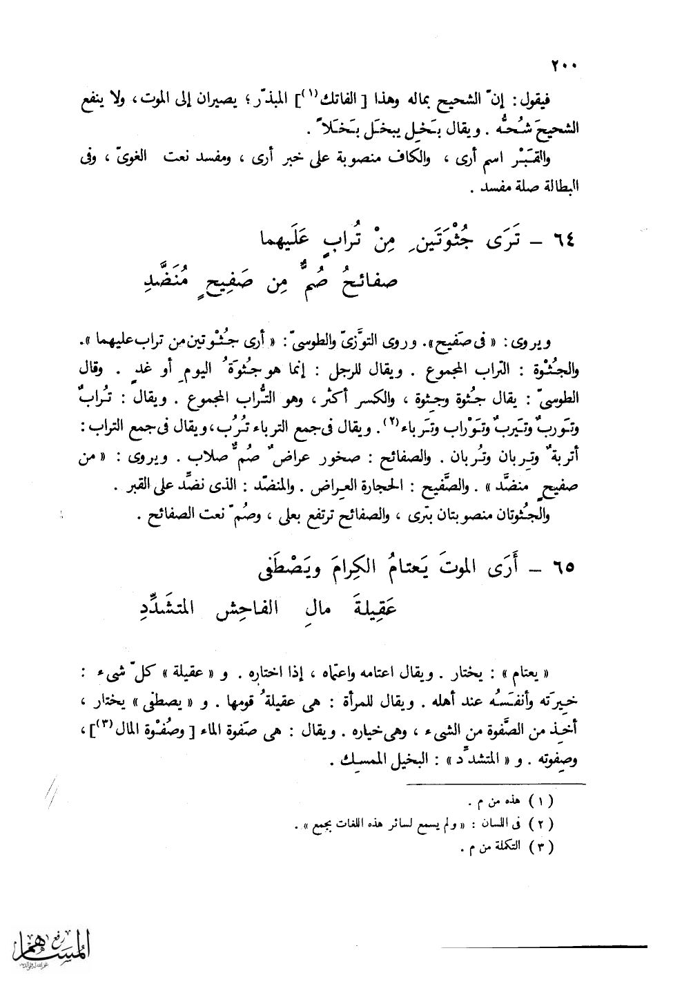 (تَرَى جُثْوَتَينَ مِنْ تُرابٍ عَلَيهمِا ... صفائحُ صُمٌّ مِن صَفِيحٍ مُنَضَّدِ)