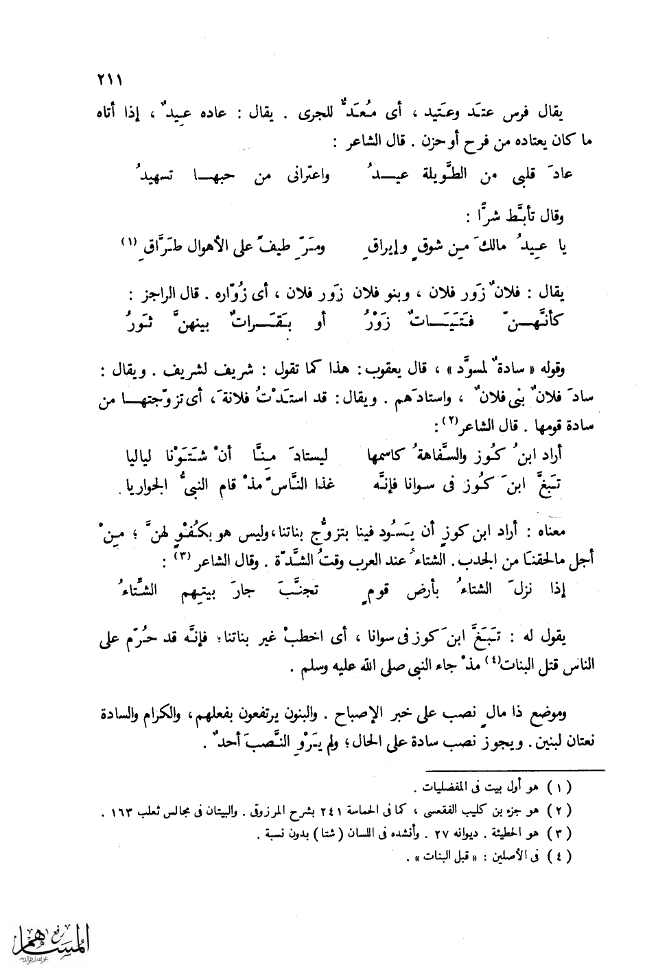 وقوله (سادة لمسود). قال يعقوب: هذا كما تقول: شريف لشريف. ويقال: ساد فلان بني فلان،
