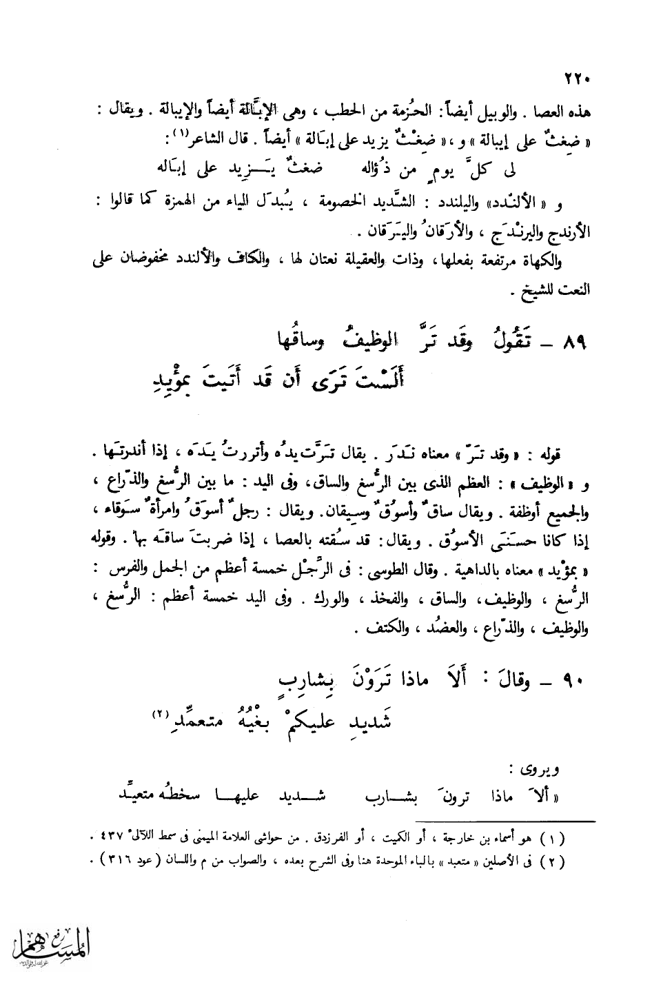 (تَقُولُ وقَد تَرَّ الوَظيفُ وساقُها ... أَلسْتَ تَرى أن قَدْ أَتَيتَ بمؤْيِدِ)