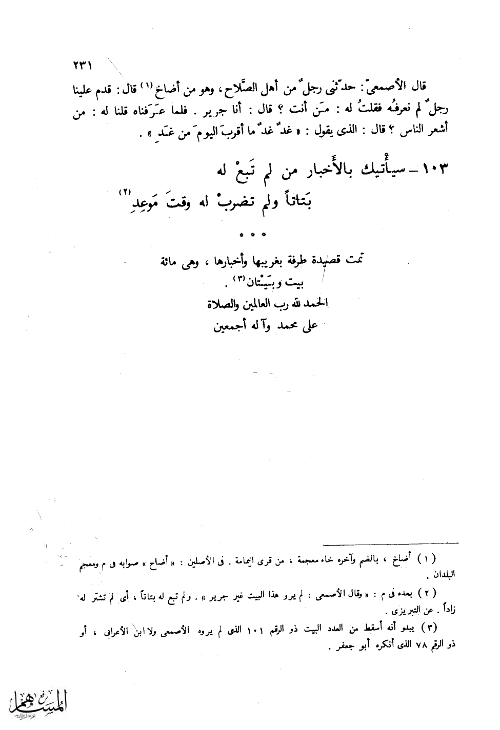 تمت قصيدة طرفة بغريبها وأخبارها، وهي مائة بيت وبيتان