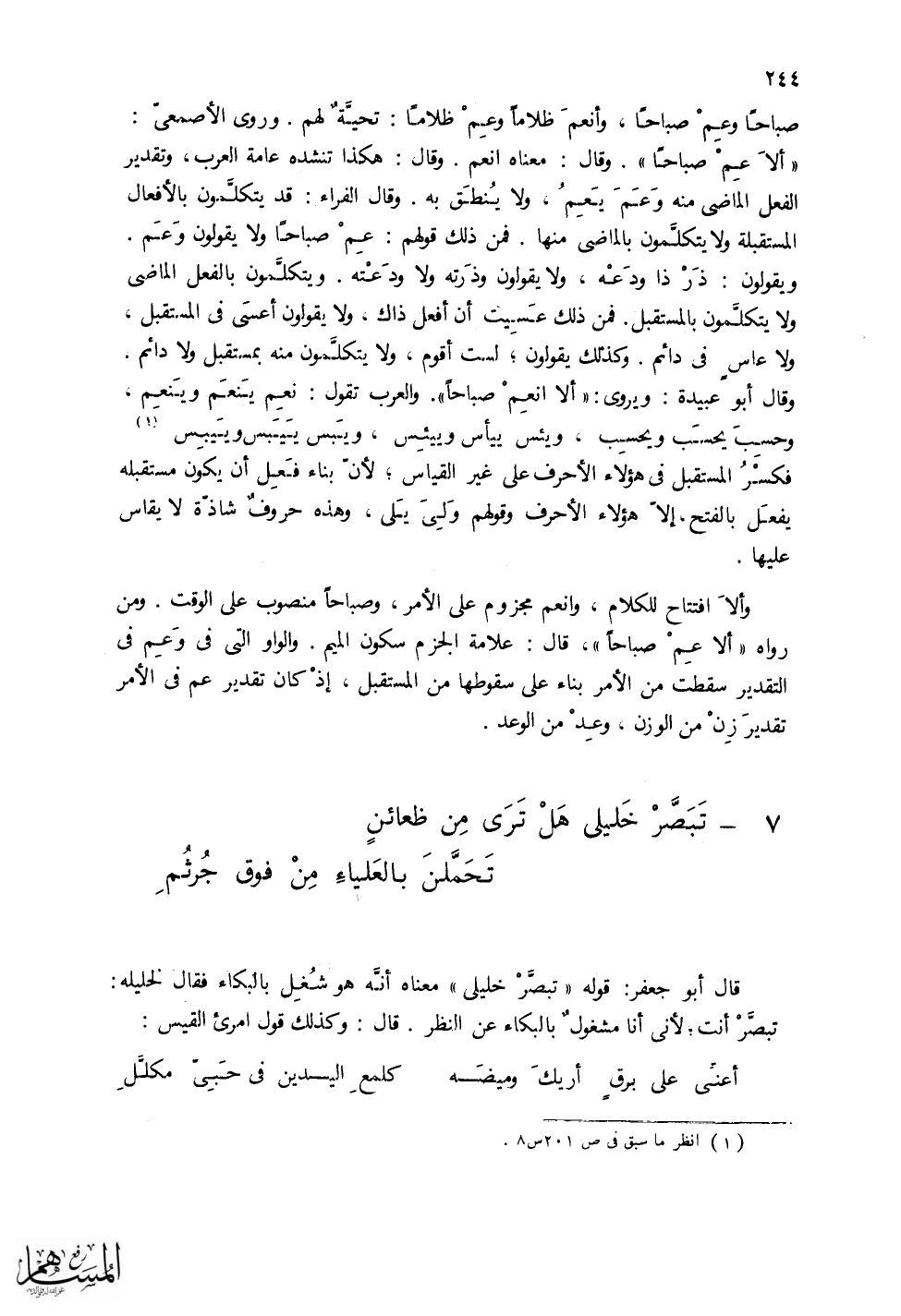 قال أبو جعفر: قوله (تبصر خليلي) معناه إنه هو شغل بالبكاء فقال لخليله: تبصر أنت، لأني أنا