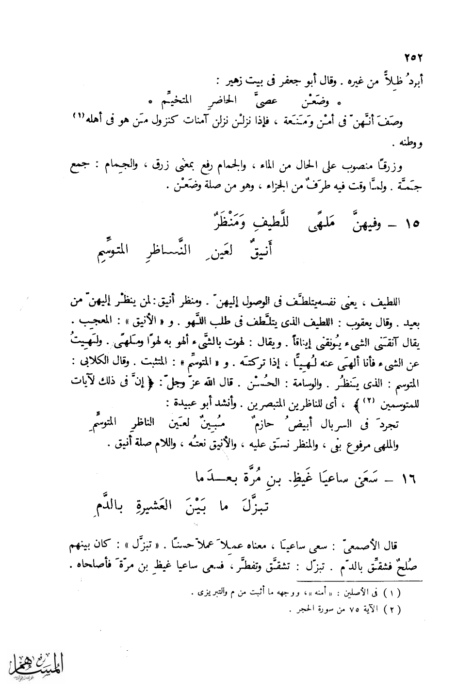 (وفيهنَّ مَلْهىً للطِيفِ ومنْظرٌ ... أَنيقٌ النَّاظرِ المتوسِّمِ)