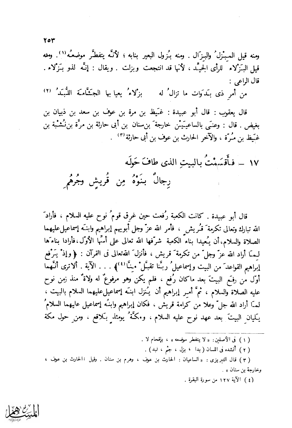 (فأَقسَمْتُ بالبَيتِ الذي طافَ حَوْلَه ... رجالٌ بَنَوْهُ من قُريش وجُرْهُمِ)