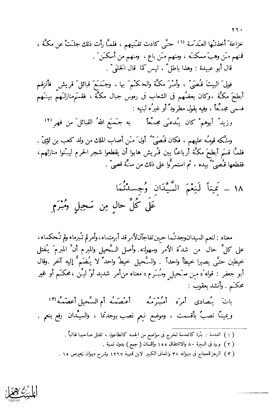 (يَمِيناً لَنِعْمَ السَّيِّدَانِ وُجِدْتُمَا ... عَلَى كُلّ حَالٍ مِنْ سَحِيلٍ ومُبْرَمِ)