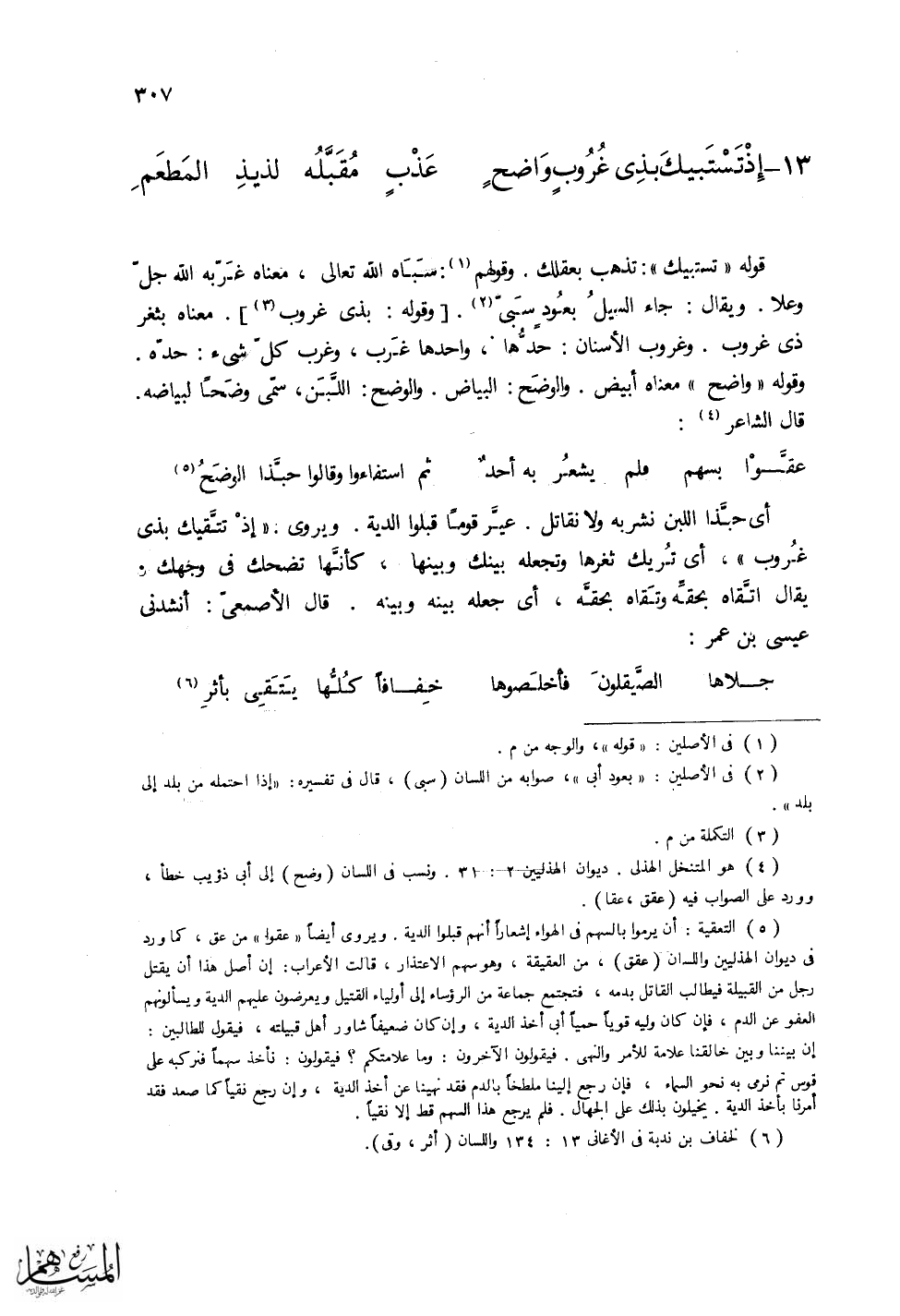 (إِذْ تَسْتَبيكَ بِذِي غُرُوبٍ وَاضحٍ ... عَذْبٍ مُقَبَّلُهُ لذيذِ المَطْعَمِ)