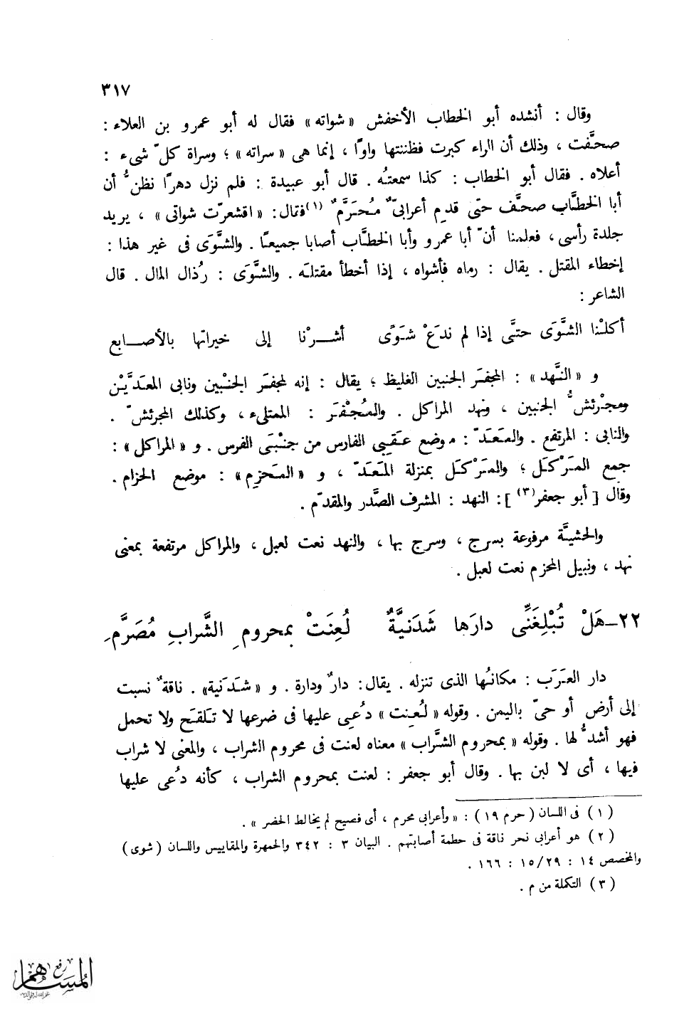 أبو عبيدة: فلم نزل دهرا نظن أن أبا الخطاب صحف حتى قدم أعرابي محرم فقال (اقشعرت