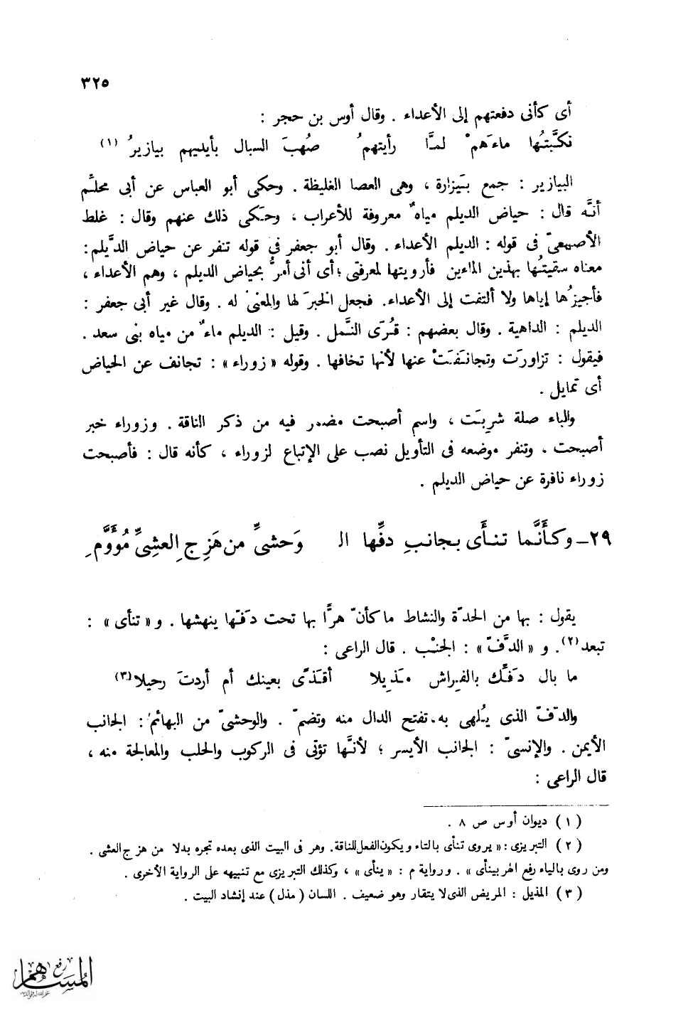 (وكأَنمّا تنأَى بِجانبِ دَفِّها ال ... وَحشيِّ من هَزِجِ العشِيِّ مُؤَوَّمِ)