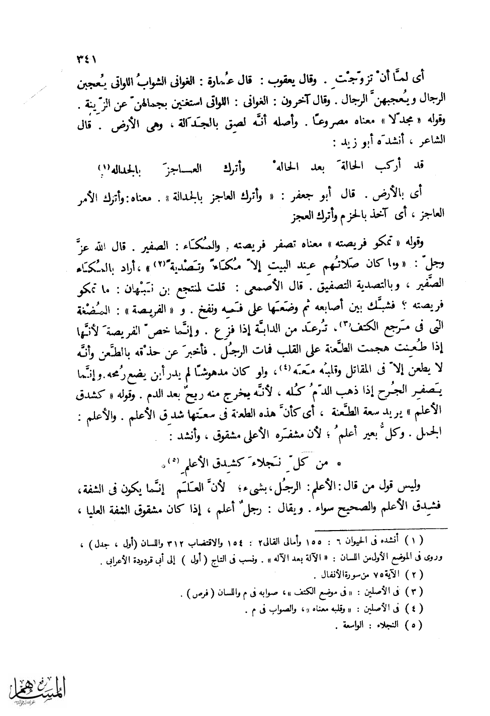 مدهوشا لم يدر أين يضع رمحه. وإنما يصفر الجرح إذا ذهب الدم كله، لأنه يخرج منه ريح بعد