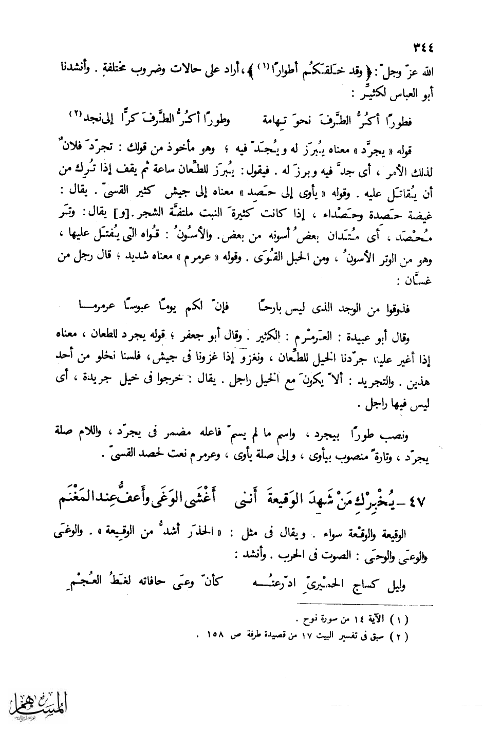 الله عز وجل: (وقد خَلقَكُم أطواراً) أراد على حالات وضروب مختلفة. وأنشدنا أبو العباس لكثيِّر: