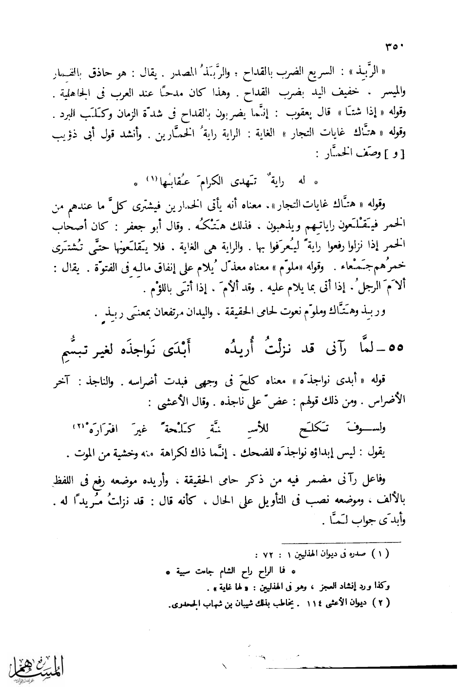 وأنشد قول أبي ذؤيب ووصف الخمار:
