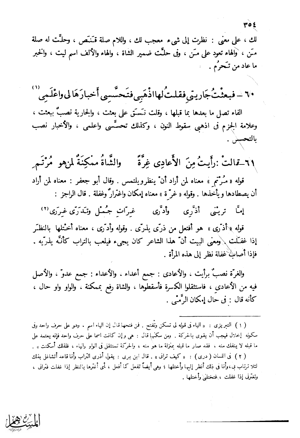 (فبعثْتُ جَاريتيِ فقلتُ لها اذْهَبِي ... فتَحسَّسِي أَخبارَهَا لي واعْلَمِي)