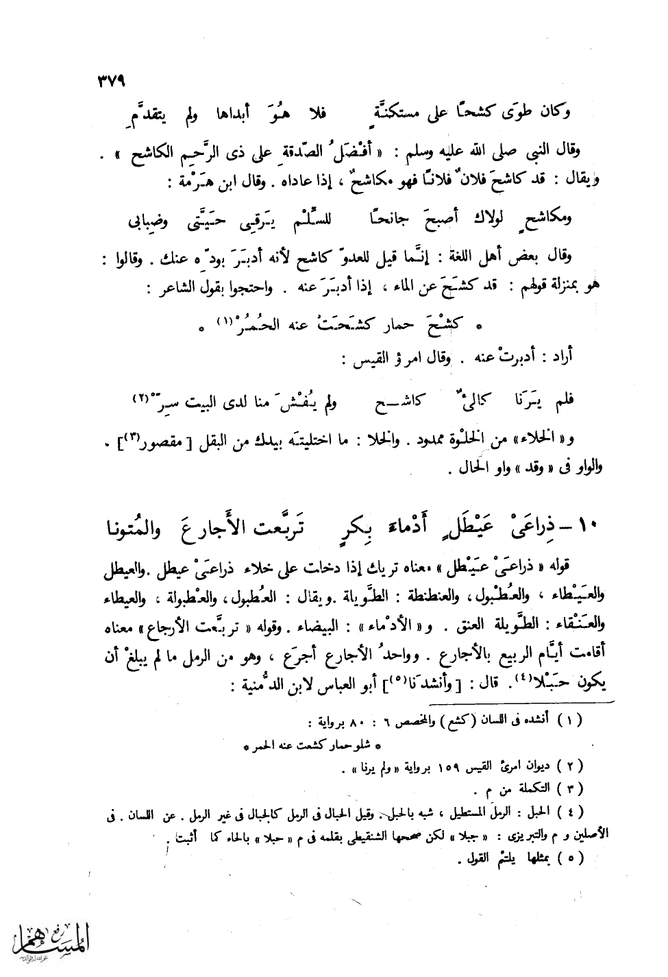 (ذِراعَيْ عَيْطَلٍ أَدْماءَ بِكرٍ ... تربَّعت الأَجارعَ والمُتونا)