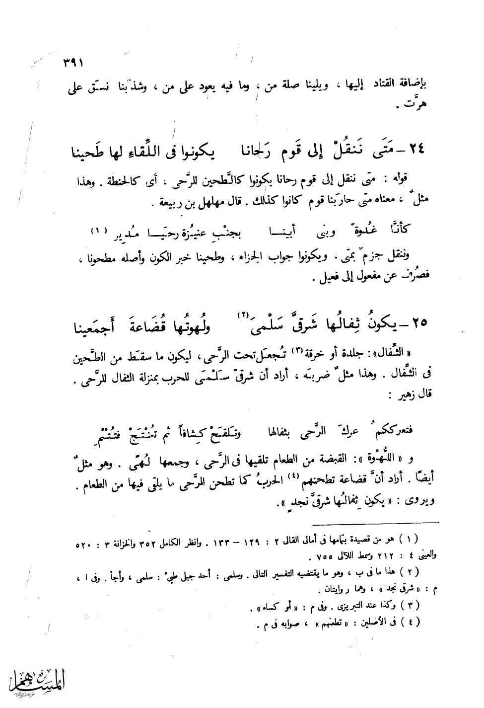 (متَى نَنقُلْ إلى قَومٍ رَحانا ... يكونوا في اللِّقاءِ لها طحينا)
