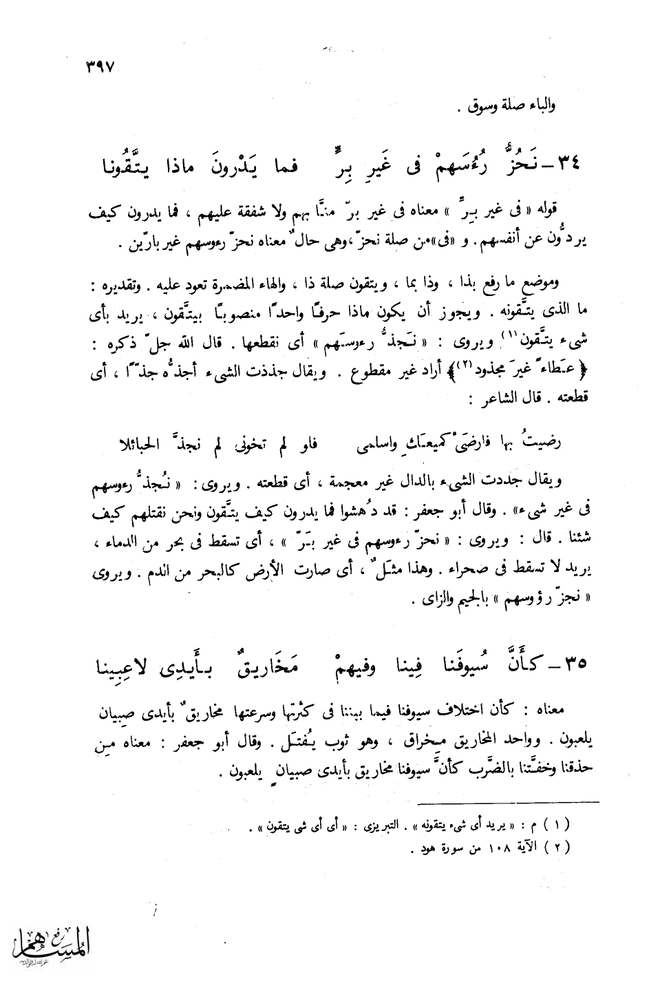 (نحُزُّ رُءُوسهم في غَيرِ بِرٍّ ... فما يدرونَ ماذا يتَّقُونا)