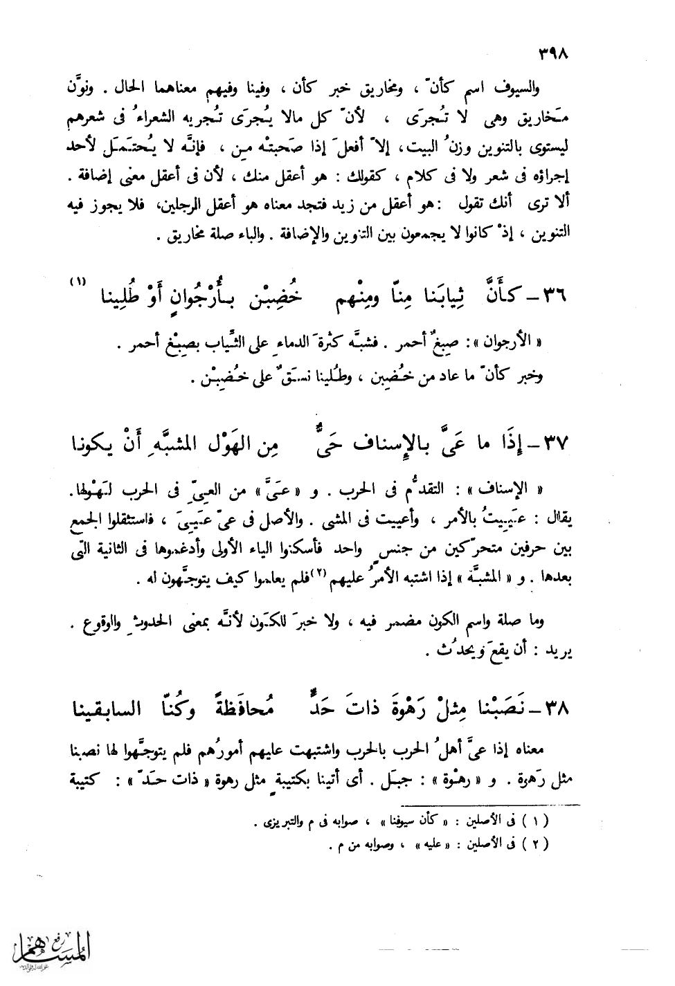 الياء الأولى وأدغموها في الثانية التي بعدها. و (المشبه) إذا اشتبه الأمر عليهم فلم يعلموا كيف