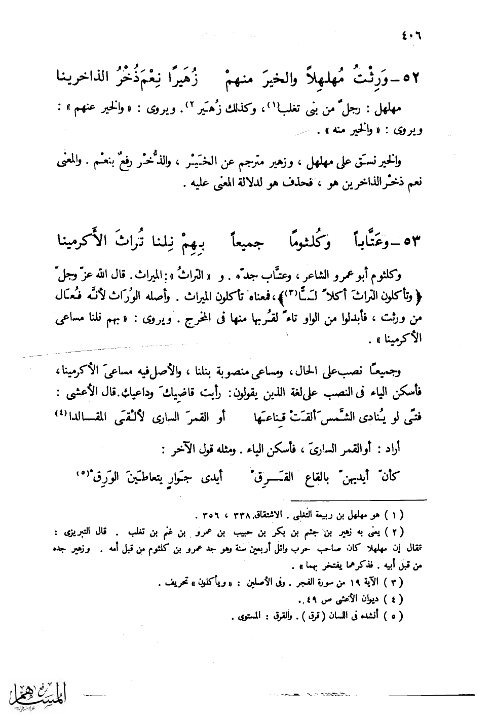 (وَرِثْتُ مُهلهِلاً والخيرَ منهمْ ... زُهَيراً ذُخْرُ الذاخرينا)