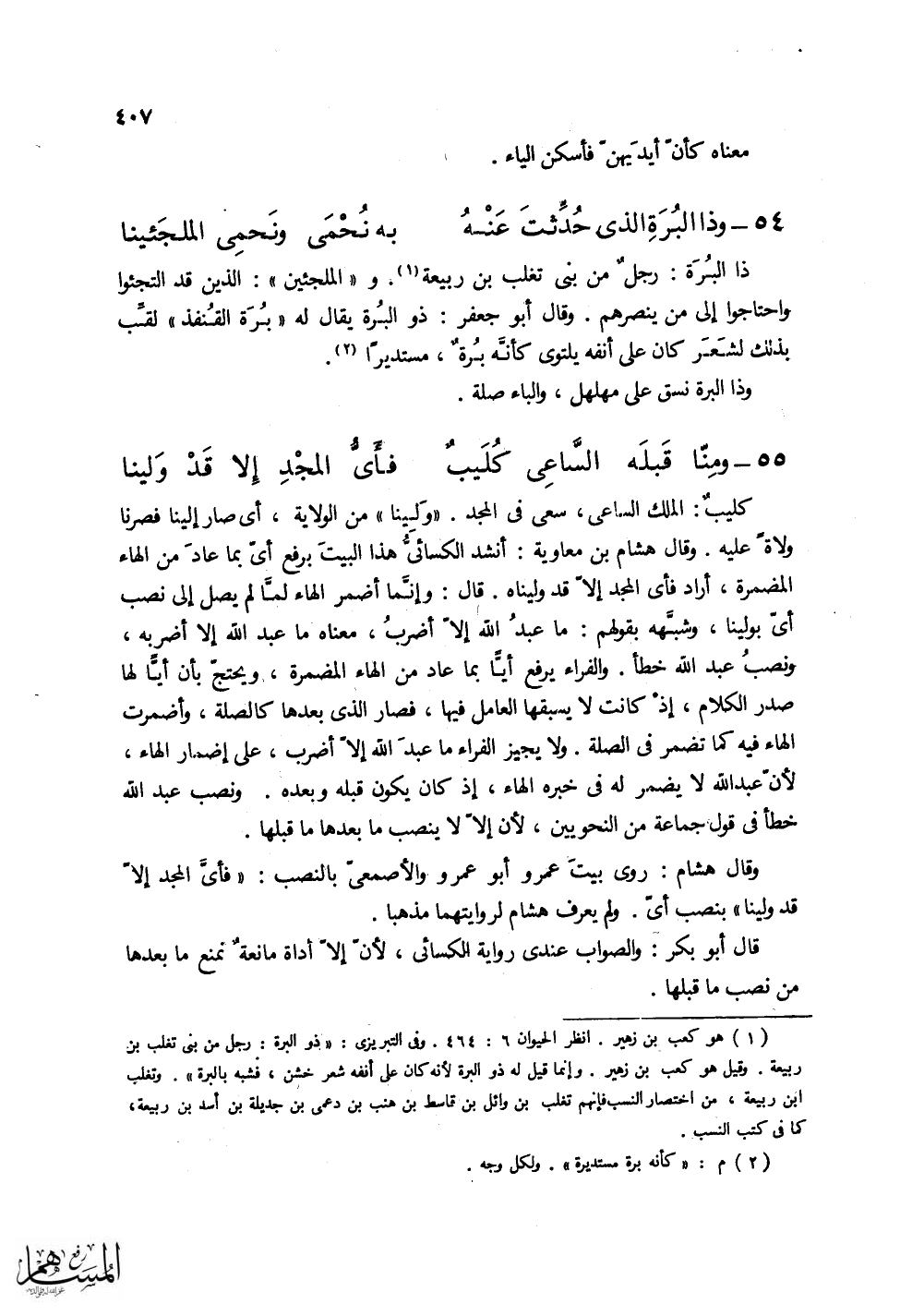 (وذا البرَةِ الذي حُدِّثتَ عَنْهُ ... به نُحْمَى ونَحمِي الملجَئينا)