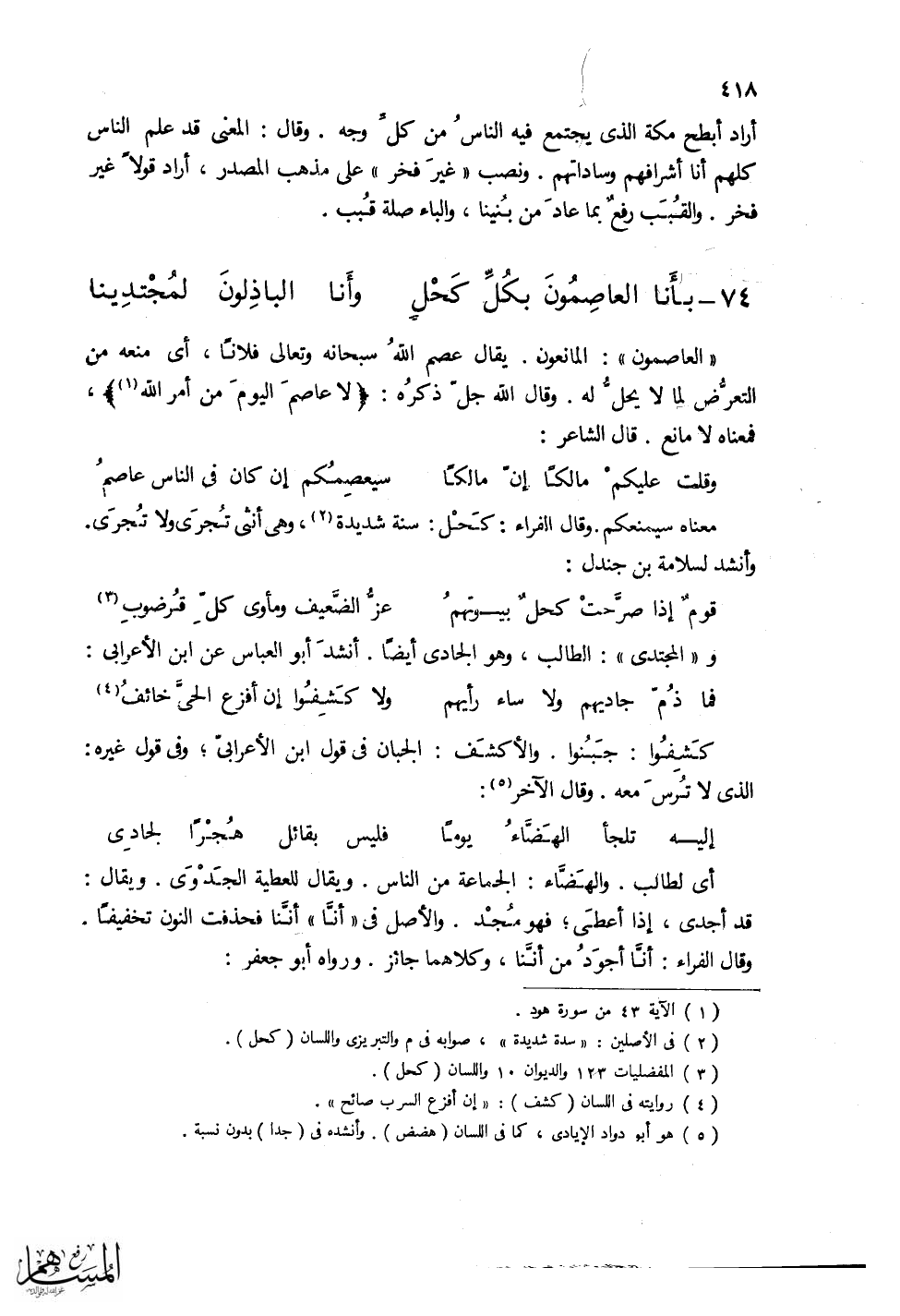 (بأَنَّا العاصِمُونَ بكُلِّ كَحْلٍ ... وأَنّا الباذِلونَ لمُجْتدِينا)