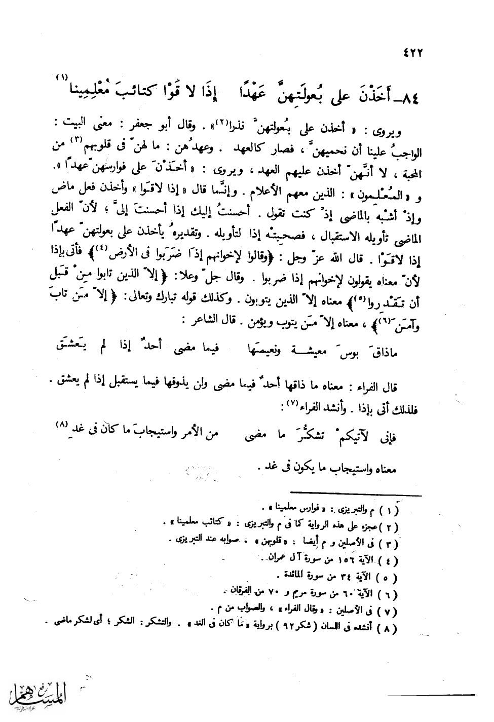(أَخَذْنَ على بُعولِتِهنَّ عَهْداً ... إِذَا رقَوْا كتائبَ مُعْلِمِينا)
