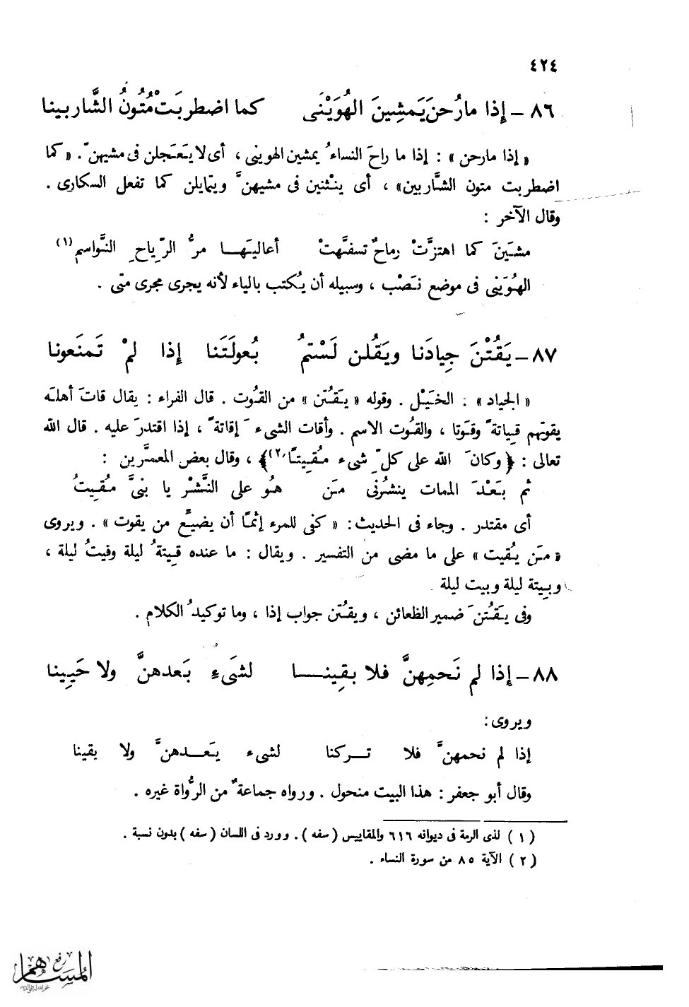 مشيَنَ كما اهتزَّتْ رماحٌ تسفَّهتْ ... أعاليَها مرُّ الرِّياحِ النَّواسمِ