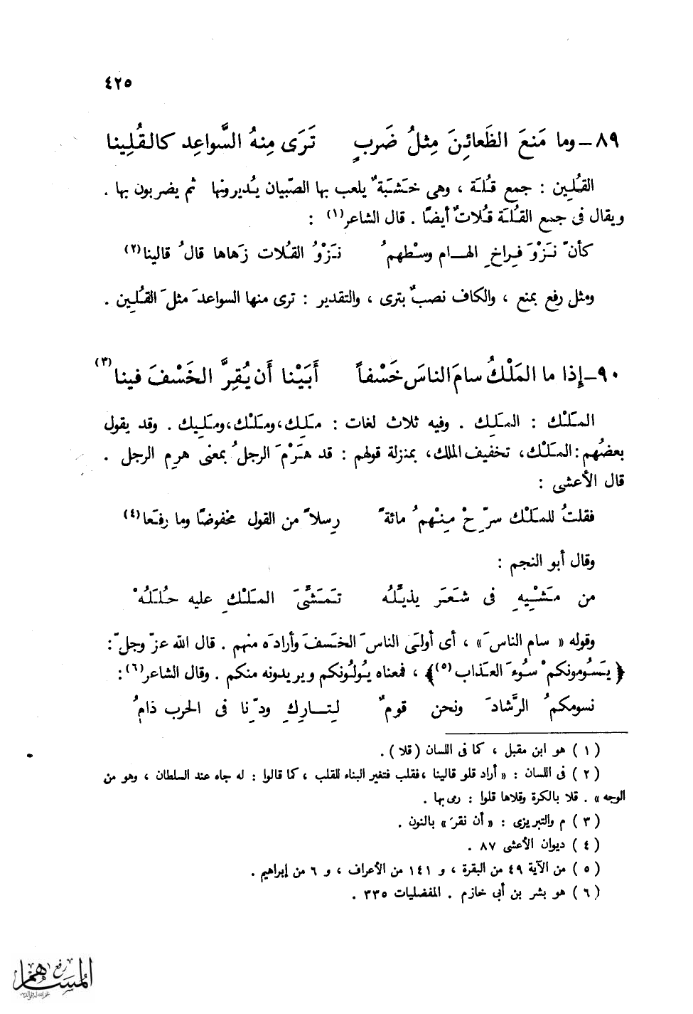 (وَمَا مَنَعَ الظَّعائِنَ مِثلُ ضَرْبٍ ... تَرَى مِنهُ السَّواعِد كالِقُلِينا)