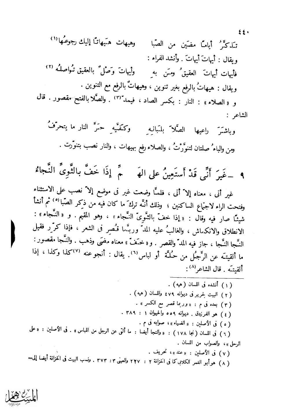 الشعر، فإذا كرر فقيل النَّجا النَّجا، جاز فيه المد والقصر. و (خف) معناه مضى وذهب. والنَّجا