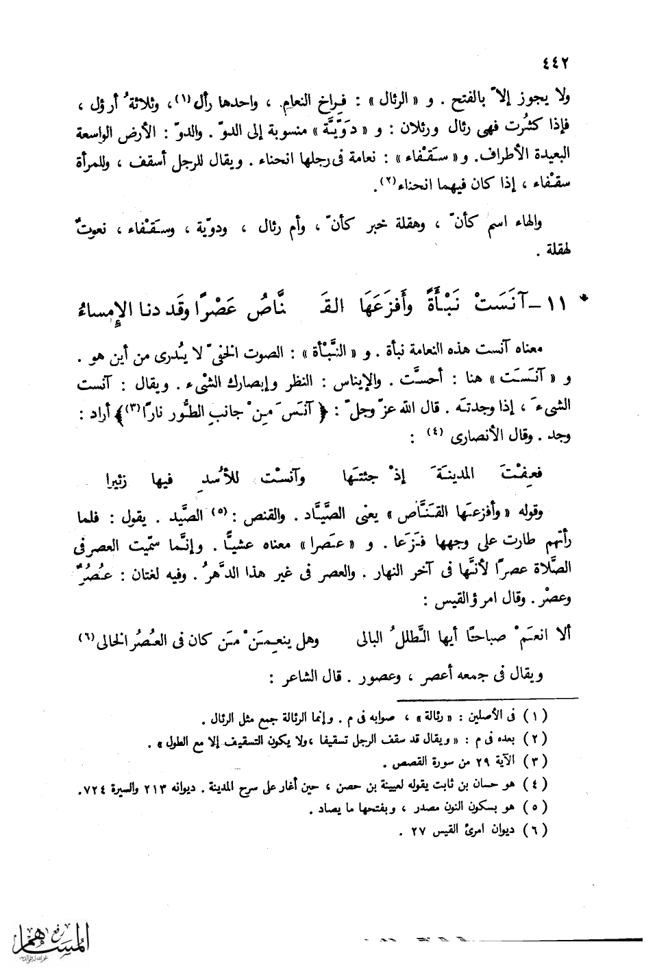 (آنستْ نَبْأَةً وأَفْزعَهَا القَ ... نَّاصُ عَصْراً وقَددنا الإِمساءُ)