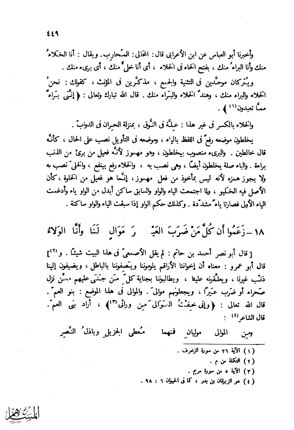 (زَعَمُوا أن كُلَّ ؤمَنْ ضَرَبَ العَيْ ... رَ مَوَالٍ لَنَا وأَنّا الوَلاءُ)