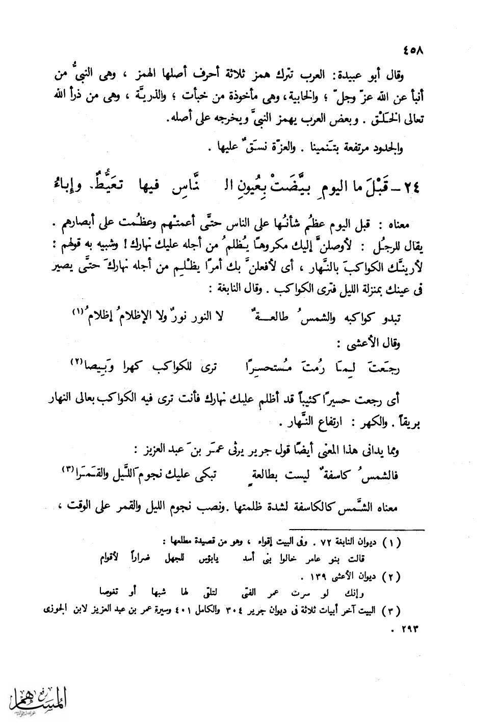 رجَعتَ لمَّا رُمتَ مُستحسراً ... ترى للكواكب كهرا وَبيصَا
