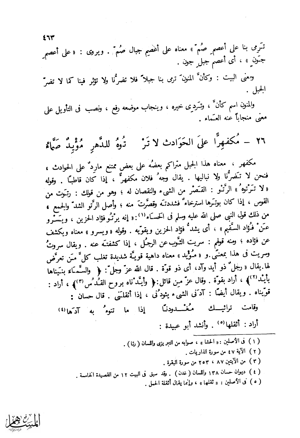 (مُكْفَهِرَّاً علَى الحَوَادثِ لا تَرْ ... تُوُ للدَّهرِ مُؤْيِدٌ صَمَّاءُ)