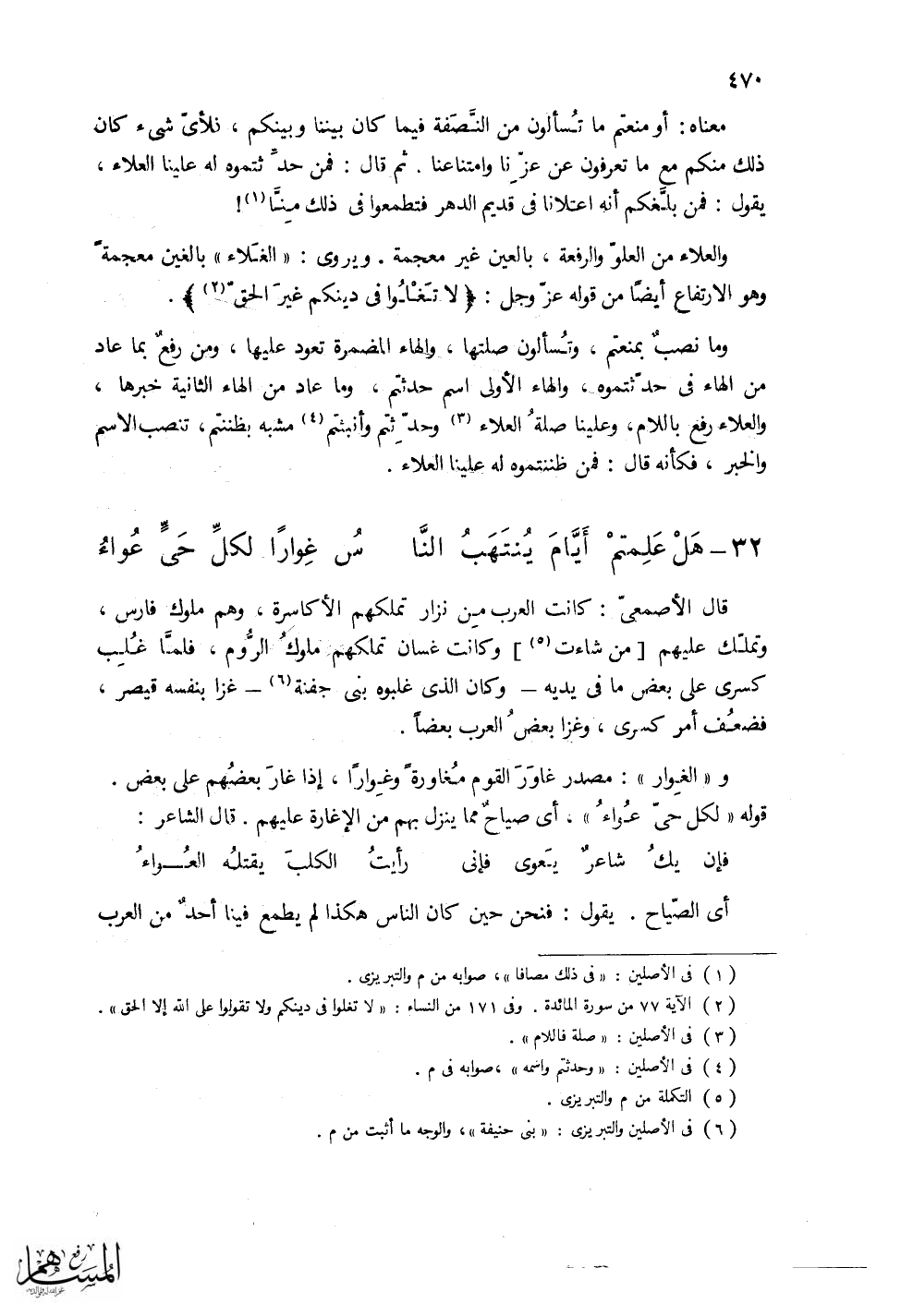 (هَلْ عَلِمتمْ أَيّامَ يُنْتَهَبُ النَّا ... سُ غِواراً لكلِّ حَيٍّ عُوَاءُ)