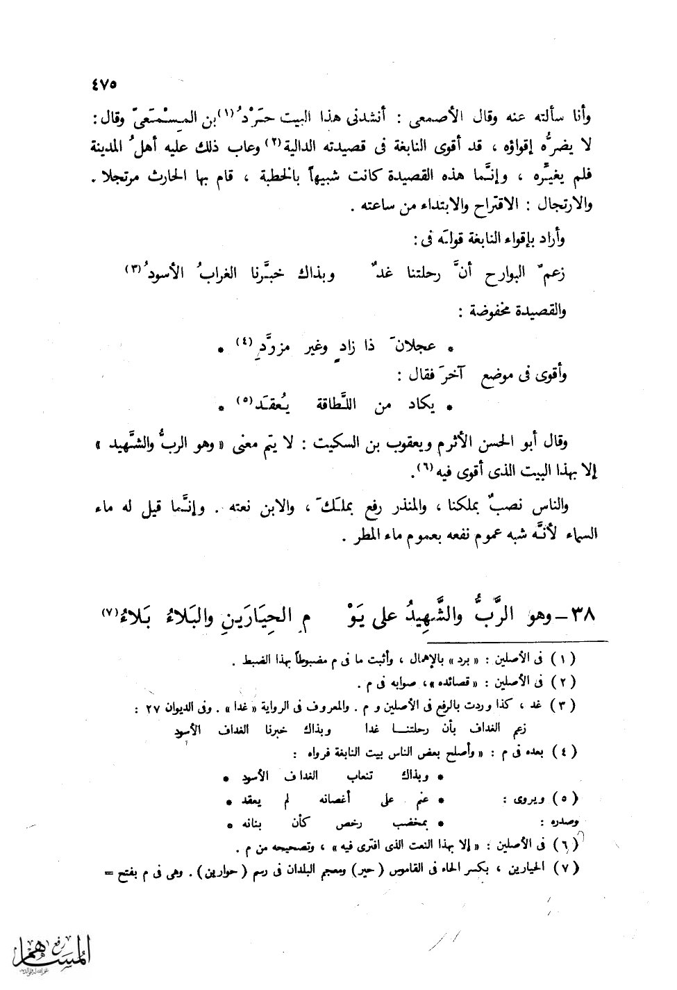 وقال أبو الحسن الأثرم ويعقوب بن السكيت: لا يتم معنى (وهو الرب والشهيد) إلا بهذا البيت الذي
