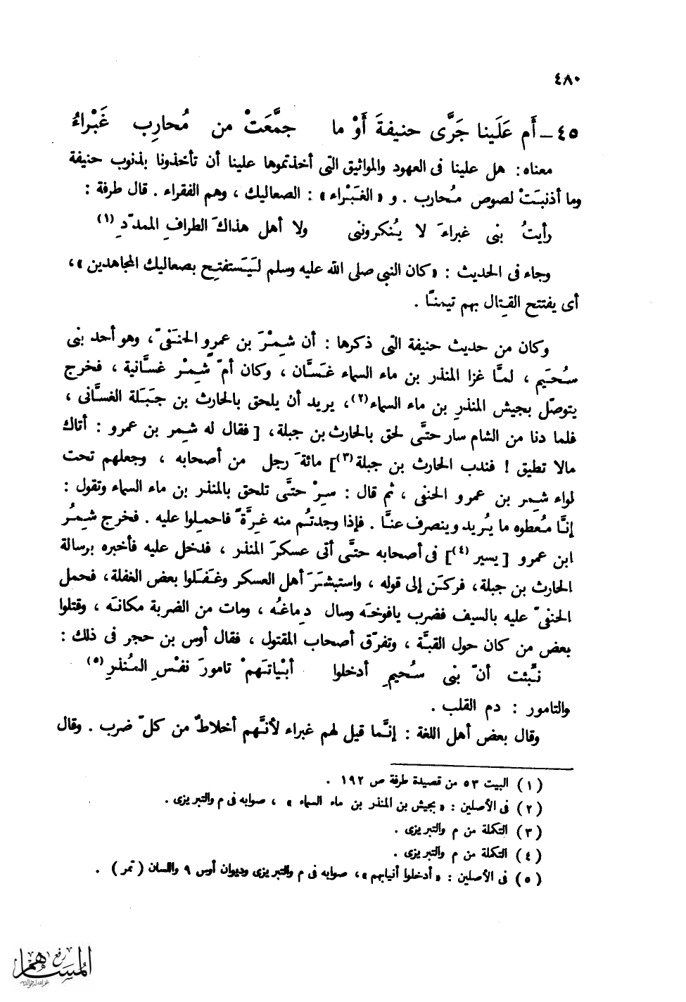 (أَم عَلَينا جَرَّى حِنيفةَ أو ما ... جمَّعَتْ من مُحاربٍ غَبْراءُ)
