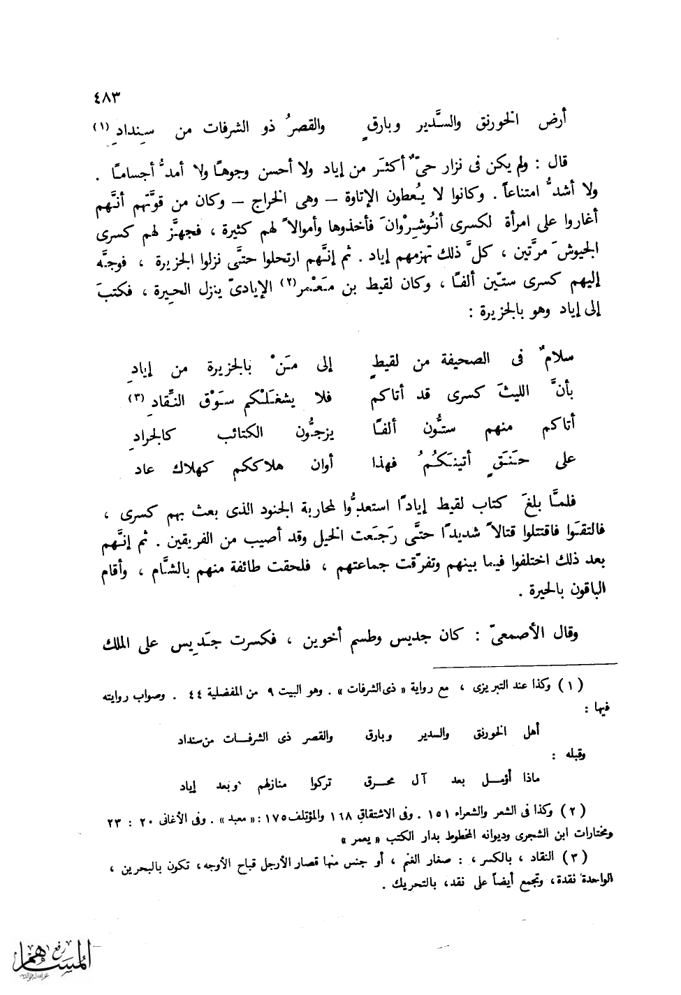 بأنَّ الليثَ كسرى قد أتاكم ... فلا يشغَلْكمُ سَوْقُ النِّقادِ