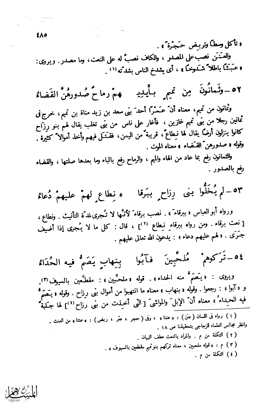 (تَرَكُوهمْ مُلحَّبِينَ فَآبُوا ... بِنِهابٍ يَصَمُّ فيه الحُدَاءُ)
