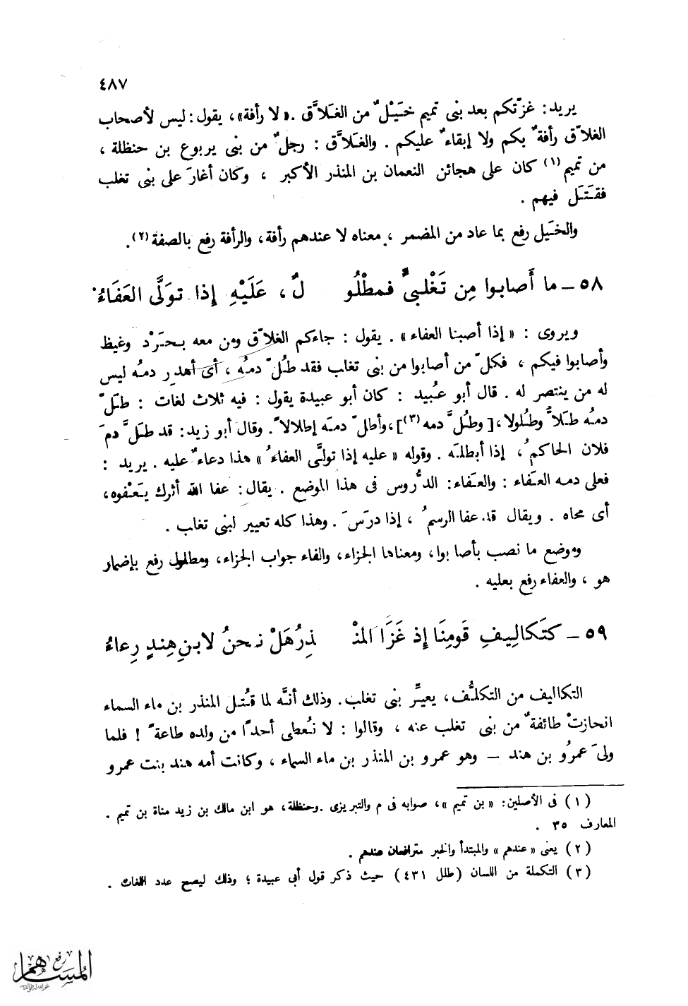 (كتَكالِيفِ قَومِنَا إِذْ غَزَا المنْ ... ذِرُ هَلْ لابنِ هِندٍ رِعاءُ)