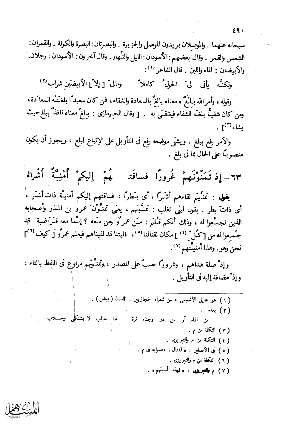 (إِذْ تَمَنَّوْنَهُمْ غُروراً فساقَتْ ... هُمْ إِليكمْ أُمْنِيَّةٌ أَشْراءُ)