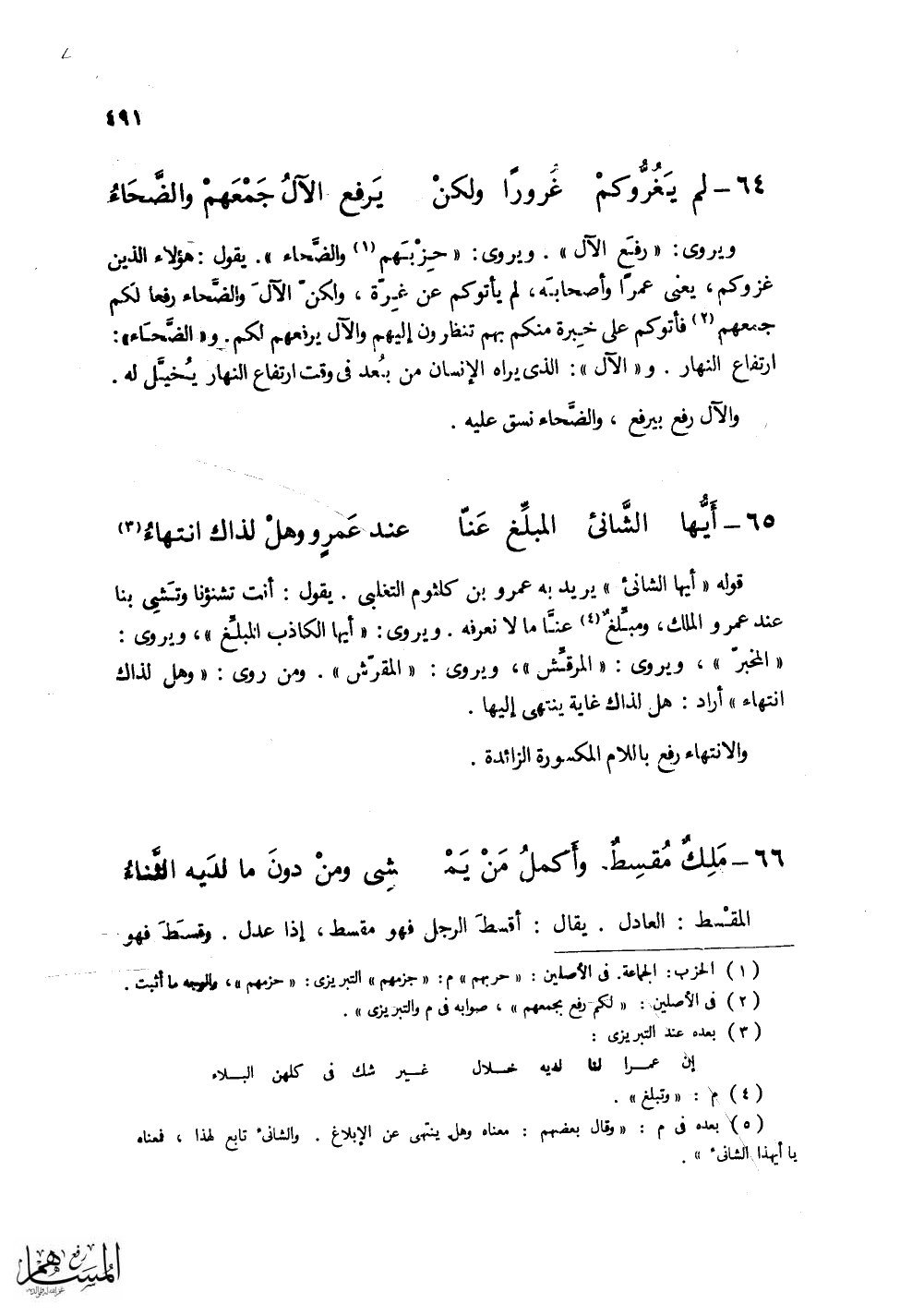 (لم يَغُرُّوكمُ غُرورا ولكنْ ... يَرفَعُ الآلُ جَمْعَهمْ والضَّحَاءُ)