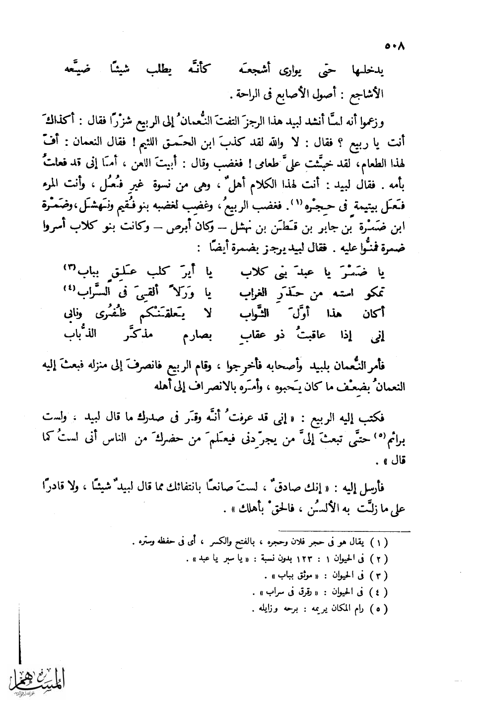 وزعموا إنه لما أنشد لبيد هذا الرجز التفت النعمان إلى الربيع شزرا فقال: أكذاك أنت يا ربيع؟