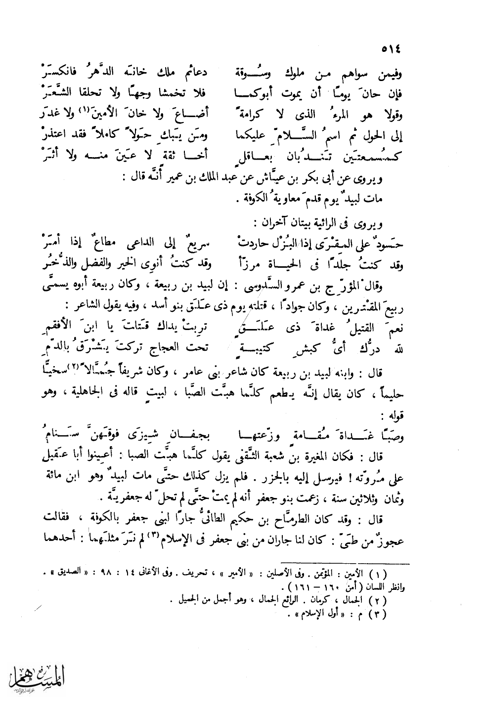 بالجزر. فلم يزل كذلك حتى مات لبيد وهو ابن مائة وثمان وثلاثين سنة، زعمت بنو جعفر إنه لم