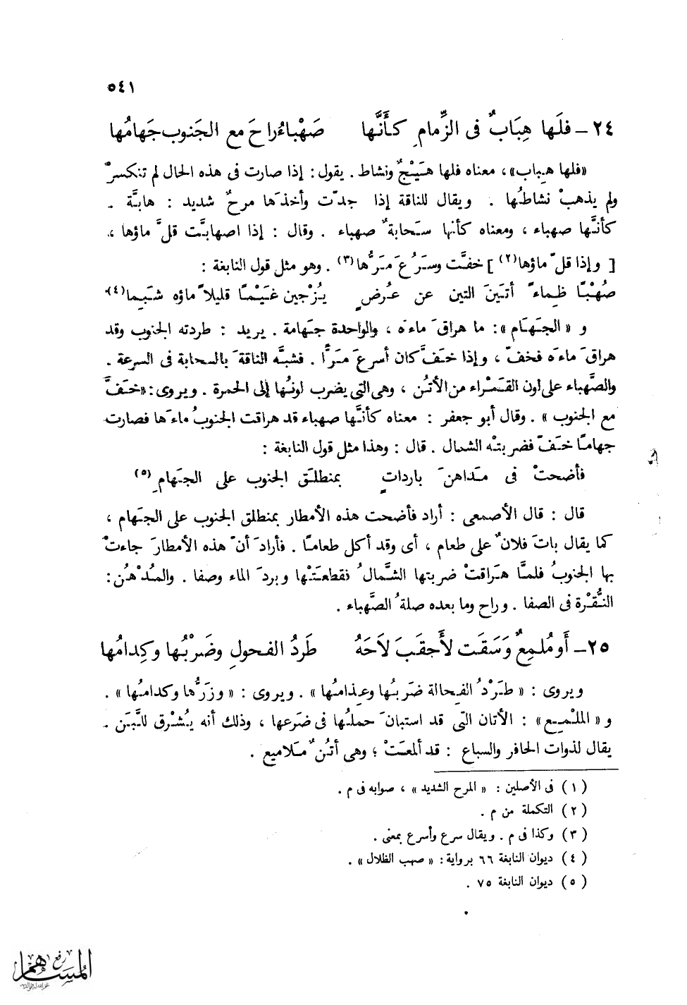 صُهْباً ظِماءً أتَينَ التِّين عن عُرضٍ ... يُزْجين غَيْماً قليلاً ماؤه شَبِما)