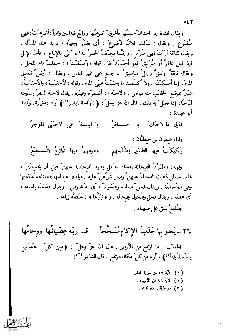 الحمر بهذا، أعنى بالإلماع؛ فأما الإبل فإذا قيل عاقر أو مزلق فهو أحمد لها. قوله (وسقت): حملت