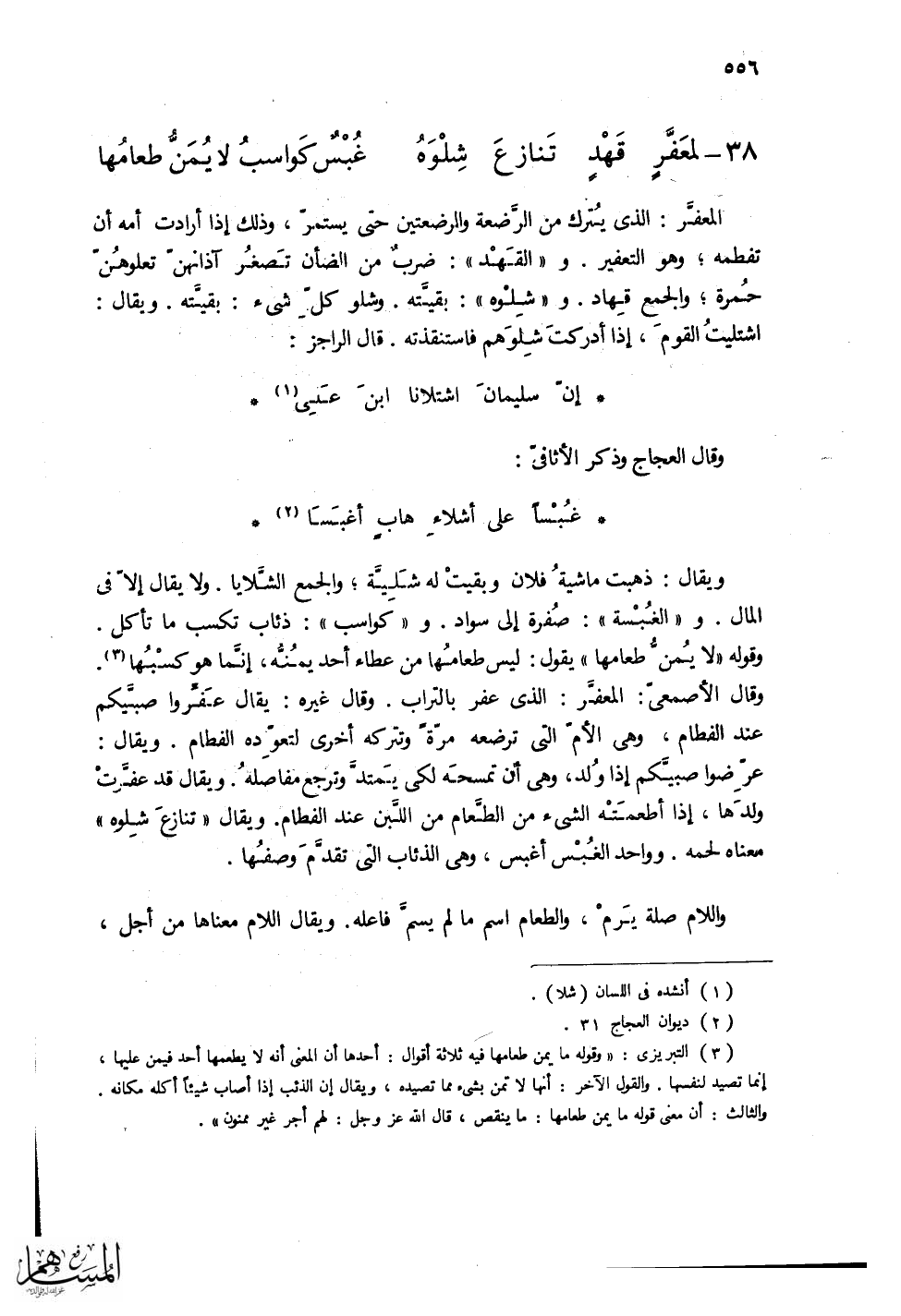 (لمعَفَّرٍ قَهْد تَنازعَ شِلْوَهُ ... غُبْسٌ كَواسبُ لايُمَنُّ طعامُها)