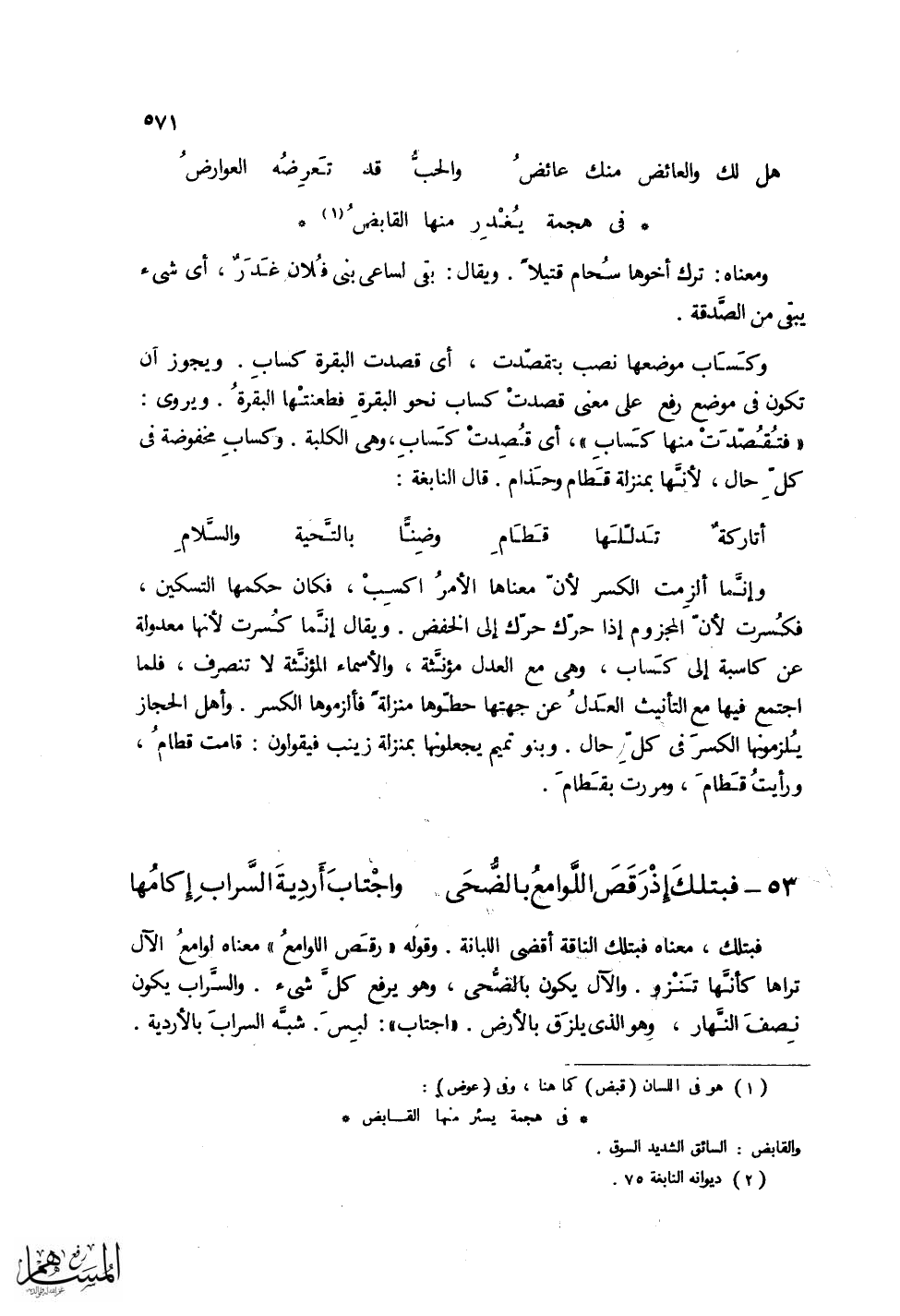 (فبِتلكَ إِذْ رَقَصَ اللَّوامعُ بالضُّحَى ... واجتْابَ أَؤدِيةَ السَّرابِ إِكامُها)