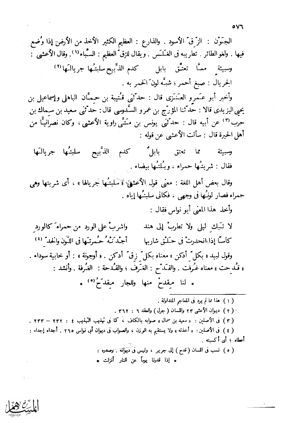وقول لبيد (بكل أدكن) معناه بكل زق أدكن. (أو جونة): أو خابية سوداء. (قدحت) معناه غرفت.