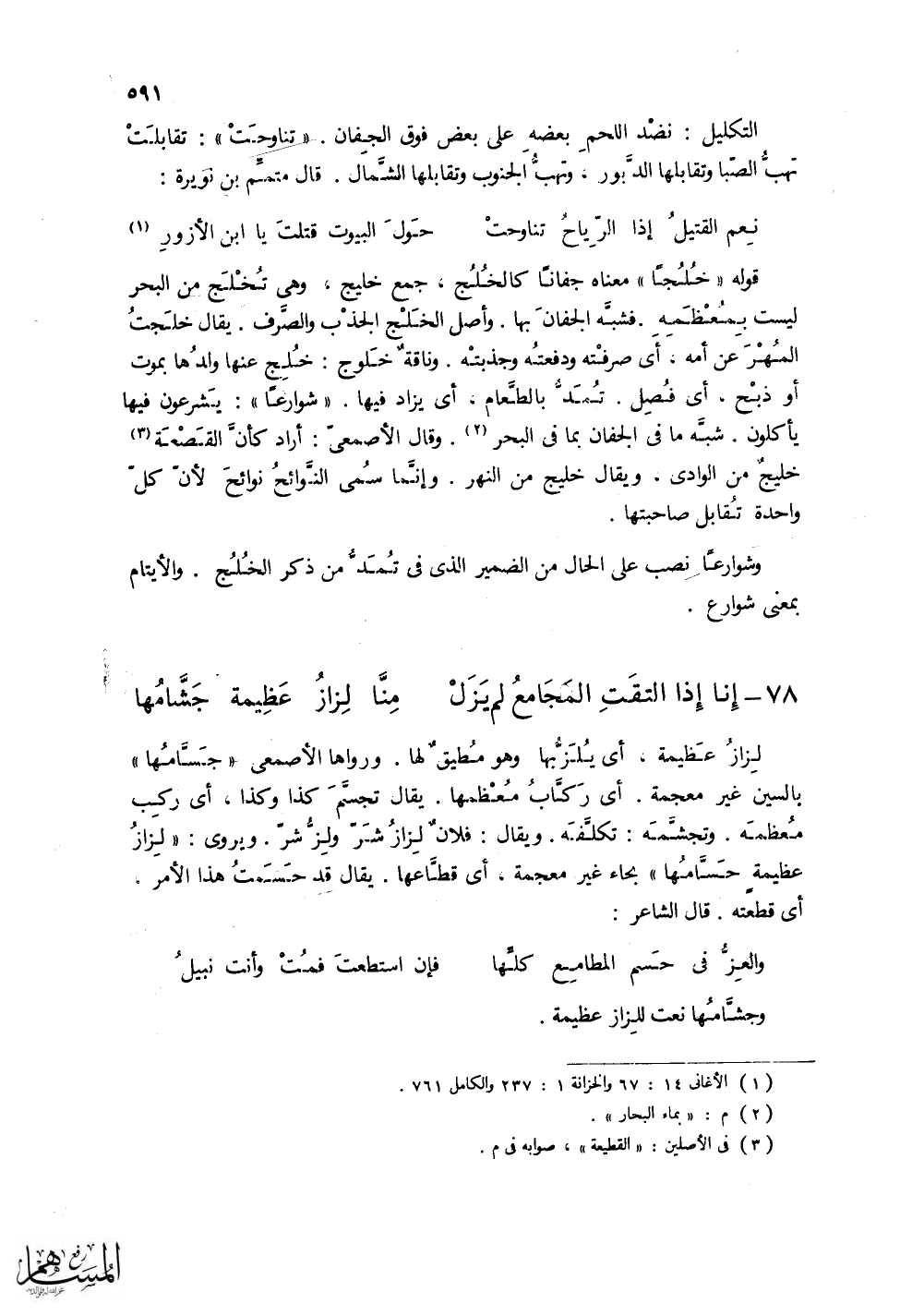 التكليل: نضد اللحم بعضه على بعض فوق الجفان. (تناوحت): تقابلت نهب الصبا وتقابلها الدبور،