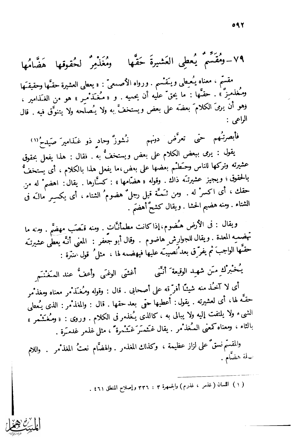 (ومُقَسِّمٌ يُعطِى العَشيرةَ حَقَّها ... ومُغَذْمِرٌ لحُقوقها هَضَّامُها)