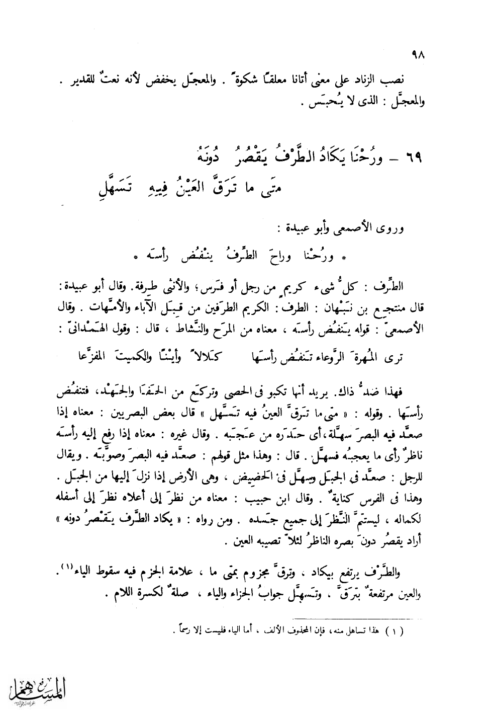 (ورُحْنَا يَكَادُ الطَّرْفُ يَقْصُرُ دُوَنْهُ ... متى ما تَرَقَّ العَيْنُ فِيهِ تَسَهَّلِ)